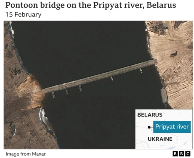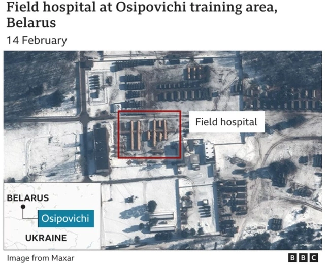 Σε αυτές διακρίνεται ένα υπαίθριο νοσοκομείο πίσω από την περιοχή εκπαίδευσης Osipovichi, στη βορειοδυτική Λευκορωσία, μια στρατιωτική πλωτή γέφυρα πάνω από τον ποταμό Πρίπιατ, ένα αυτοκινούμενο πυροβόλο ή πυροβόλα μεγάλου διαμετρήματος στην περιοχή Brestsky, που απέχει περίπου 50 χιλιόμετρα από τα σύνορα με την Ουκρανία και μια μονάδα από 20 επιθετικά - αντιαρματικά ελικόπτερα 30 χλμ από τα σύνορα. Όλα τα παραπάνω προκαλούν μια κάποια ανησυχία, ωστόσο, όλα αυτά θα μπορούσαν να δικαιολογηθούν σε μια τόσο μεγάλης κλίμακας στρατιωτική άσκηση. Παράλληλα, οι εικόνες τραβήχτηκαν στα μέσα του μήνα και σίγουρα πριν από την ημερομηνία κατά την οποία η Μόσχα ανακοίνωσε πως ολοκλήρωσε τις στρατιωτικές ασκήσεις και πως ο στρατός επιστρέφει σταδιακά στη βάση του.