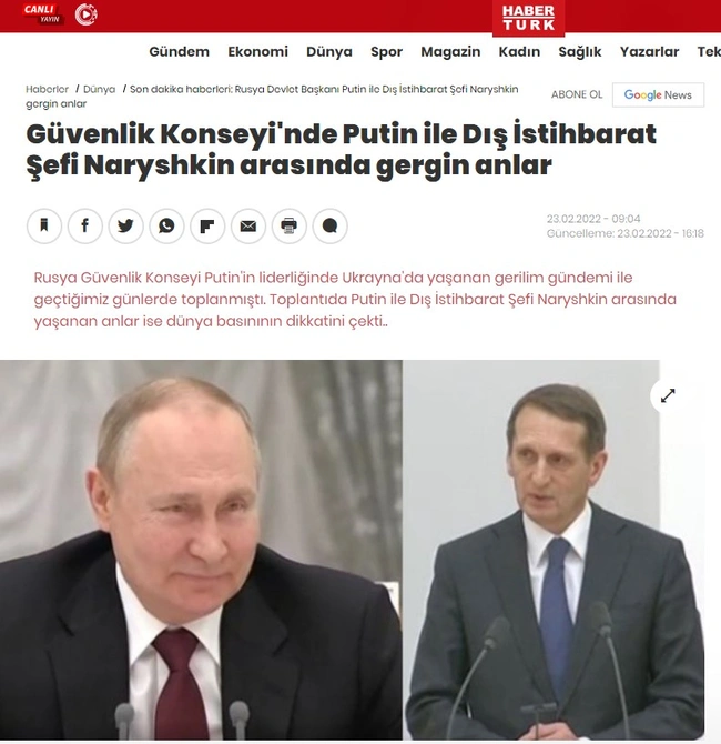 Οι στιγμές που βίωσε ο Ρώσος αρχικατάσκοπος Σεργκέι Ναρίσκιν σε μία ιδιαίτερα αμήχανη σκηνή, όπου σαν άλλο... μαθητούδι είχε σηκωθεί στον πίνακα για να πει το μάθημα και ο «δάσκαλος» Βλαντίμιρ Πούτιν τον έπιασε αδιάβαστο, δεν ήταν και οι καλύτερες για το προφίλ του επικεφαλής της υπηρεσίας Κατασκοπείας της Ρωσίας. Μάλιστα, όσο και αν προσπάθησε να το σώσει σχετικά με το πώς θα έπρεπε να χειριστεί η Ρωσία την αναγνώριση της ανεξαρτησίας του Ντονμπάς, το κακό είχε ήδη γίνει και τα διεθνή ΜΜΕ στάθηκαν σοκαρισμένα από το ωμό «μπούλινγκ» του Ρώσου προέδρου στον νο1 πράκτορα της χώρας.