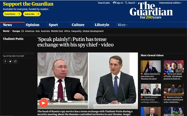 Σύμφωνα με τον αρθρογράφο της Guardian, Σον Γουόκερ, η συνεδρίαση αυτή δεν ήταν... συνηθισμένη. Στο άρθρο του στη βρετανική εφημερίδα ο Γουόκερ επισημαίνει ότι ο τρόπος με τον οποίο τα μέλη του συμβουλίου ασφαλείας ήταν καθισμένα απέναντι στον Πούτιν θύμιζε εργαζόμενους μιας εταιρείας που περιμένουν νευρικοί έξω από το γραφείο του «αφεντικού» για να τους τα ψάλλει!