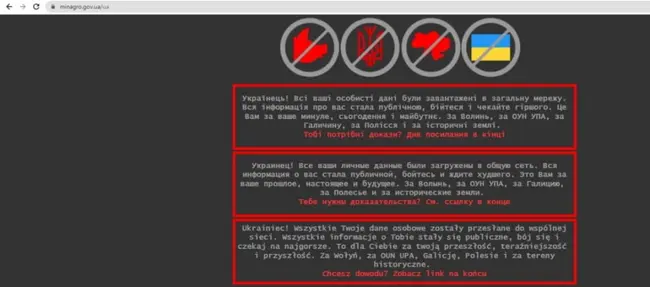 Την ίδια ώρα, σύμφωνα με δημοσιεύματα των ΜΜΕ στη χώρα, παρόμοια μηνύματα υπήρχαν σε ιστοσελίδες άλλων κρατικών φορέων, όχι μόνο στην ιστοσελίδα του υπουργείου Αγροτικής Πολιτικής. Μέχρι στιγμής, όλοι αυτοί οι πόροι απλώς έχουν κλείσει. Προβλήματα υπάρχουν επίσης με τις ιστοσελίδες του Υπουργείου Εξωτερικών και της Υπηρεσίας Ασφαλείας της Ουκρανίας.