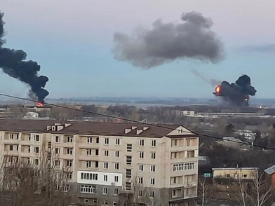 Στην πρωτεύουσα, ακούστηκαν τουλάχιστον δύο ισχυρές εκρήξεις στο κέντρο και αμέσως μετά σειρήνες ασθενοφόρων. Στην Μαριούπολη, τη μεγαλύτερη πόλη στον τομέα του μετώπου με μισό εκατομμύριο κατοίκους, όπου βρίσκεται λιμάνι στρατηγικής σημασίας, αρκετοί κάτοικοι ανέφεραν ότι ακούγονται πυρά πυροβολικού από συνοικία στον ανατολικό τομέα της πόλης. Πιο κοντά στο μέτωπο, στην Κραματόρσκ, ακούστηκαν τουλάχιστον τέσσερις ισχυρές εκρήξεις.