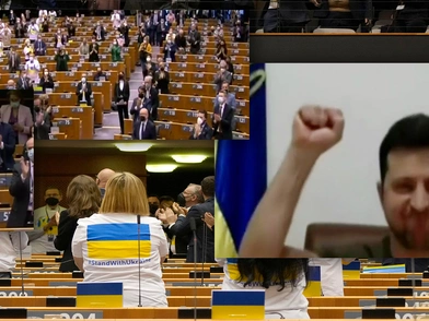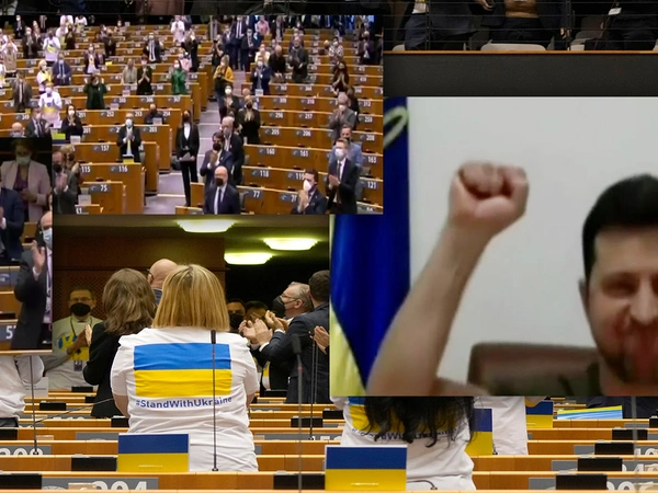 Ο πρόεδρος της Ουκρανίας την Τρίτη 1η Μαρτίου μίλησε στο Ευρωκοινοβούλιο με την ατμόσφαιρα να είναι συγκινησιακά φορτισμένη. «Ηρθε η ώρα να μας στηρίξετε, να αποδείξετε ότι είστε στο πλευρό μας. Αντιστεκόμαστε αλλά πληρώνουμε μεγάλο τίμημα» είπε ο Βολοντίμιρ Ζελένσκι και ανέφερε πως τα πυραυλικά χτυπήματα «είναι το τίμημα της ελευθερίας» με αποτέλεσμα να συγκινηθεί ο μεταφραστής και να κλάψει. Τα μέλη του Ευρωκοινοβουλίου σηκώθηκαν όρθια χειροκρότησαν τον Ουκρανό πρόεδρο που τόνισε πως «η ζωή νικά το θάνατο, και το φως θα νικήσει το σκοτάδι».