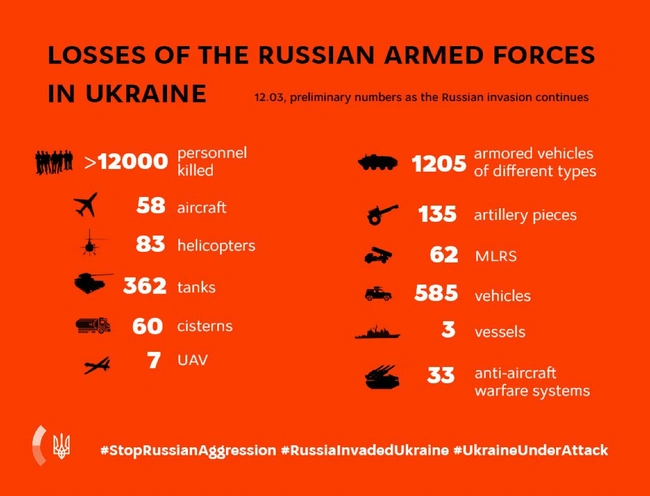- Περισσότεροι από 12.000 νεκροί Ρώσοι στρατιώτες