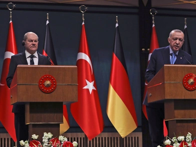 Όσον αφορά τις σχέσεις με τη Γερμανία ο Ερντογάν μίλησε τη γλώσσα του χρήματος: «Πιστεύω ότι ο μηχανισμός διαβούλευσης μας με τη Γερμανία σε υψηλό επίπεδο πρέπει να αναβιώσει. Οι υπουργοί Εξωτερικών μας θα συναντηθούν μεταξύ τους και θα πραγματοποιήσουμε τη Συνάντησή μας υψηλού επιπέδου στην Τουρκία. Η Γερμανία είναι ο πρώτος εταίρος της Τουρκίας στις εξαγωγές και ο δεύτερος στις εισαγωγές. Ο όγκος των συναλλαγών μας έχει ξεπεράσει τα 41 δισεκατομμύρια δολάρια το 2021 και είμαστε αποφασισμένοι να αυξήσουμε αυτό το ποσό στα 50 δισεκατομμύρια δολάρια».