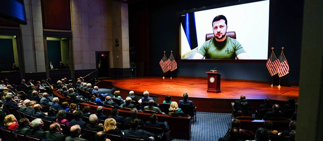 Ενα «πύρινο» λόγο έβγαλε ο πρόεδρος της Ουκρανίας, Βολοντίμιρ Ζελένσκι, μιλώντας το μεσημέρι της Τετάρτης (16/3) στο αμερικανικό Κογκρέσο, όπου απευθυνόμενος στους πολιτικούς της χώρας, ζήτησε αρχικά την περεταίρω στήριξη των ΗΠΑ για την άμεση παύση του πυρός από τους Ρώσους, «κλείνοντας» τον εναέριο χώρο, κάτι που έχει ήδη ζητήσει και σε προηγούμενες ομιλίες του προς το ΝΑΤΟ. Εθεσε όμως και την εναλλακτική λύση της προμήθειας πυραύλων S-300 και αεροπλάνων, ώστε να αντιμετωπιστεί δυναμικά ο πόλεμος που δέχεται η χώρα του από τη Ρωσία. Μίλησε όμως και με βάση ορισμένα ιστορικά γεγονότα που συνέβησαν στις ΗΠΑ, τα οποία μπορούν να βοηθήσουν τους Αμερικανούς να καταλάβουν καλύτερα το τι συμβαίνει αυτή τη στιγμή στην Ουκρανία.