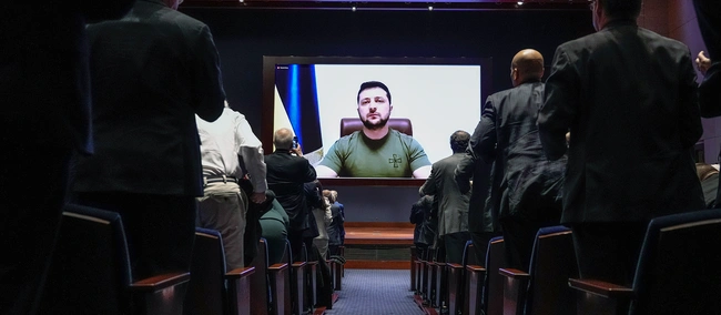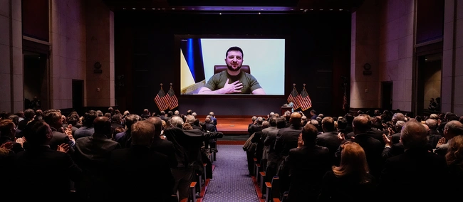 Κατά τη διάρκεια του λόγου του Ζελένσκι ξεκίνησε να προβάλλεται στη γιγαντοοθόνη ένα συγκλονιστικό βίντεο με πολεμικές εικόνες από το δράμα της Ουκρανίας, που έκανε αρκετούς Αμερικανούς πολιτικούς να δακρύσουν, καθώς και το μήνυμα του Ζελένσκι γινόταν όλο και πιο συναισθηματικό: