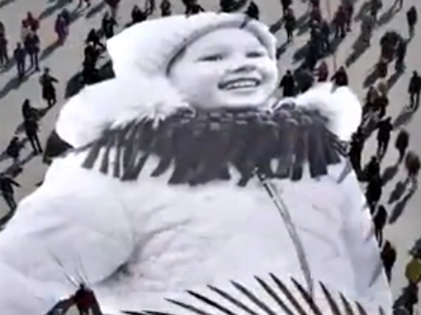 Περισσότεροι από 100 άνθρωποι, στις 14 Μαρτίου, ξεδίπλωσαν ένα πανό που δείχνει την 5χρονη Βαλέρια έξω από το Θέατρο Οπερας και Μπαλέτου, όπως αναφέρει το NEXTA στην ανάρτησή του. Το Time εμπνεύστηκε από αυτή τη δράση για να κάνει το εξώφυλλο που για μία ακόμη φορά έγινε viral.