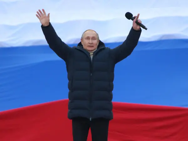 «Οι ηρωϊκοί κάτοικοι της Κριμαίας και της Σεβαστούπολης αποτελούν την κινητήρια δύναμη της ειδικής επιχείρησης στην Ουκρανία. Οι κάτοικοι έβαλαν σκληρά εμπόδια στους Ναζί και δεν δέχτηκαν το πραξικόπημα στο Ντονμπας κάτοικοι κριμαίας Σεβαστούπολης φραγμό σκληρό στη ναζιστών Ντονμπάς δεν δέχτηκαν το πραξικόπημα των εκκαθαριστικών επιχειρήσεων στο Ντονμπάς», είπε ο Πούτιν, από το στάδιο Λουζνίκι της Μόσχας και σε εκείνο το σημείο... χάθηκε η απευθείας μετάδοση της φιέστας αιφνιδίως. Μάλιστα λίγο πριν είχε επικαλεστεί και την Αγία Γραφή για να μιλήσει για θυσίες αγάπης! Η συγκέντρωση στη Μόσχα ονομάστηκε «Συναυλία για έναν κόσμο χωρίς ναζισμό» και δόθηκε ιδιαίτερη μέριμνα στο να γεμίσει το μεγαλύτερο στη Ρωσία στάδιο, όπου και διεξήχθη ο τελικός του Παγκοσμίου Κυπέλλου του 2018.