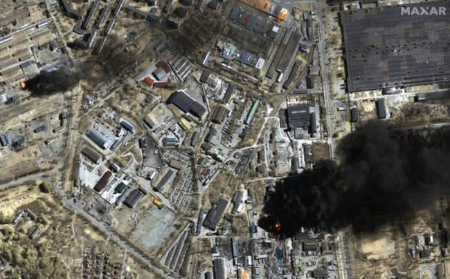 Οι εικόνες, που τραβήχτηκαν τη Δευτέρα, δείχνουν θέσεις του ρωσικού πυροβολικού δυτικά της αεροπορικής βάσης Antonov που ελέγχεται από τη Ρωσία, βορειοδυτικά της πρωτεύουσας, Κιέβου. Εξάλλου, σε άλλη δορυφορική εικόνα το Τσερνίγκοφ φλέγεται με τους Ρώσους να χτυπούν τις υποδομές και δη δεξαμενές πετρελαίου. Τέλος, στην Μαριούπολη, η εικόνα είναι σοκαριστική με ολόκληρα οικοδομικά τετράγωνα τυλιγμένα στις φλόγες.