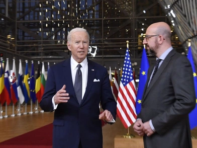 Ο Μπάιντεν και οι ηγέτες της Ευρωπαϊκής Ένωσης την Πέμπτη «συζήτησαν τη συνεργασία ΕΕ-ΗΠΑ για τη μείωση της εξάρτησης από τα ρωσικά ορυκτά καύσιμα», σύμφωνα με δήλωση του Λευκού Οίκου.