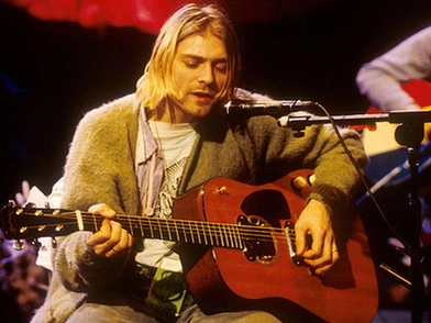 Την μουσική, όμως, δεν την εγκατέλειψε. Στα 15 του είχε την πρώτη του κιθάρα (δώρο γενεθλίων από έναν θείο του) και άρχισε να μαθαίνει διάσημα ροκ τραγούδια. Πρώτα συναντήθηκε με τον Krist Novoselic. Το... γλυκό «έδεσε» όταν οι δυο τους βρήκαν τον Dave Grohl. Οι Nirvana ήταν γεγονός. Το 1989 κυκλοφορούν το άλμπουμ Bleach (ντράμερ σε αυτόν τον δίσκο ήταν ο Chad Channing) και το 1991 ταράζουν τα νερά της παγκόσμιας μουσικής σκηνής με την κυκλοφορία του Nevermind! Είναι το άλμπουμ που θα βγάλει την grunge από τα στενά όρια του Σιάτλ και θα την συστήσει σε ολόκληρο τον πλανήτη. Το Nevermind πούλησε πάνω από 30 εκατομμύρια αντίτυπα σε όλο τον πλανήτη και έγινε διαμαντένιο στις ΗΠΑ!