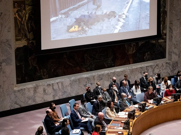 Ο Ουκρανός πρόεδρος Βολοντίμιρ Ζελένσκι έδειξε στο Συμβούλιο Ασφαλείας του ΟΗΕ ένα βίντεο με πολύ σκληρά πλάνα ανθρώπων που σκοτώθηκαν στην Ουκρανία, προκαλώντας την έντονη αντίδραση της προεδρεύουσας του οργάνου αυτού. Αυτές οι εικόνες είναι «φοβερές», είπε η πρέσβειρα της Βρετανίας Μπάρμπαρα Γούντγουορντ, δηλώνοντας «σκανδαλισμένη» από τα πλάνα που έδειχναν πτώματα ή μέλη των θυμάτων. Στο σύντομο βίντεο εικονίζονταν απανθρακωμένα και ακρωτηριασμένα πτώματα, ακόμη και παιδιών, από το Ιρπίν, την Ντιμέρκα, τη Μαριούπολη και την Μπούκα.