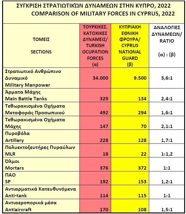 - Για κάθε ένα Εθνοφρουρό αναλογούν 3,6 Τούρκοι στρατιώτες.
