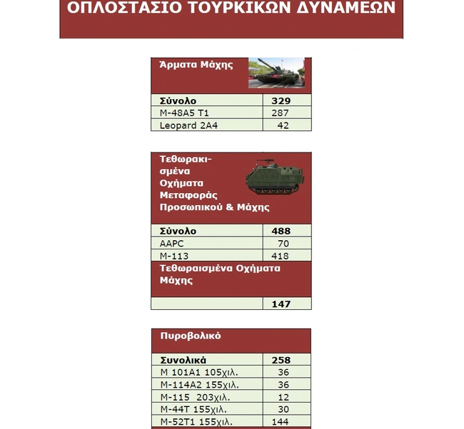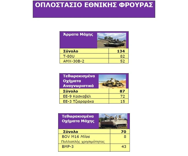 Από τα ανωτέρω συνάγεται ότι για κάθε άρμα μάχης της Εθνικής Φρουράς αναλογούν 2,4 τουρκικά.