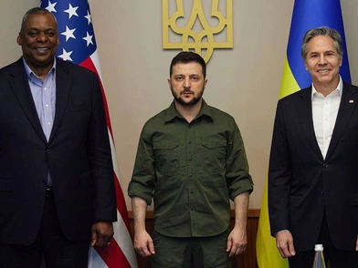 Στο Κίεβο βρέθηκαν οι υπουργοί Εξωτερικών και Άμυνας των ΗΠΑ, Άντονι Μπλίνκεν και Λόιντ Όστιν, πραγματοποιώντας την πρώτη επίσκεψη Αμερικανών αξιωματούχων στην Ουκρανία μετά την εισβολή της Ρωσίας και την έναρξη του πολέμου. Οι δύο υπουργοί, μάλιστα, ανακοίνωσαν πέρα από τη σταδιακή επιστροφή των Αμερικανών διπλωματών στην Ουκρανία και τον διορισμό νέου πρεσβευτή στη χώρα, και την παροχή επιπλέον βοήθειας στη χώρα ύψους άνω των 700 εκατ. δολαρίων.