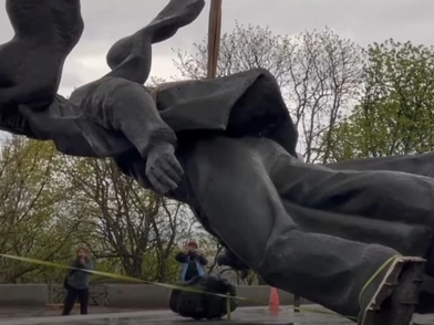 Αυτό που έπεσε πρώτο ήταν το κεφάλι του αγάλματος που αναπαριστούσε τον ρώσο εργαζόμενο, επισήμανε ο ίδιος. Το συμβολικό στιγμιότυπο αναπαρήγαγαν ουκρανικά ΜΜΕ χθες Τετάρτη. «Πρέπει να διώξουμε τον εχθρό, τον ρώσο εισβολέα, από τη χώρα μας», τόνισε ο δήμαρχος της ουκρανικής πρωτεύουσας.