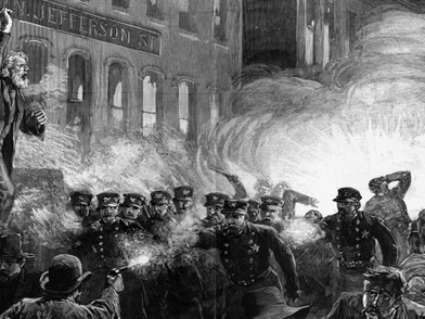 Το πρώτο αίμα χύθηκε δύο ημέρες αργότερα έξω από το εργοστάσιο ΜακΚόρμικ στο Σικάγο. Απεργοσπάστες προσπάθησαν να διασπάσουν τον απεργιακό κλοιό και ακολούθησε συμπλοκή. Η Αστυνομία και οι μπράβοι της επιχείρησης επενέβησαν δυναμικά. Σκότωσαν τέσσερις απεργούς και τραυμάτισε πολλούς, προκαλώντας οργή στην εργατική τάξη της πόλης.