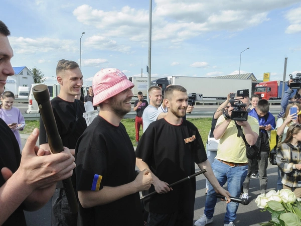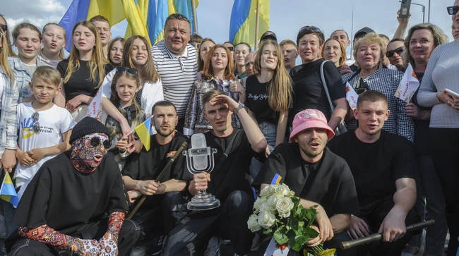 Το συγκρότημα Kalush Orchestra επέστρεψε σήμερα, Δευτέρα (16/5), στην Ουκρανία μετά τον θρίαμβο στον διαγωνισμό τραγουδιού της Eurovision. Στρατιώτες και γυναίκες -- που εξυμνούνται στο νικητήριο τραγούδι «Stefania» -- υποδέχθηκαν τα μέλη του συγκροτήματος στα σύνορα με την Πολωνία. Στον frontman του συγκροτήματος Ολεχ Πσιουκ προσφέρθηκαν λουλούδια στα χρώματα της ουκρανικής σημαίας (κίτρινο και μπλε), προτού αγκαλιάσει τη σύντροφό του. Στη συνέχεια η Kalush Orchestra παρουσίασε μια αυτοσχέδια διασκευή του τραγουδιού «Stefania», το οποίο κατέκτησε την πρωτιά στον διεθνή διαγωνισμό που φιλοξενήθηκε φέτος στο Τορίνο της Ιταλίας.