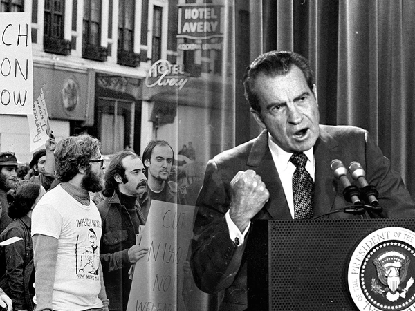 Μόλις δύο χρόνια νωρίτερα, το Νοέμβριο του 1972, είχε επανεκλεγεί με μία από τις πιο σαρωτικές νίκες στην ιστορία των ΗΠΑ. Δυστυχώς όμως για εκείνον, οι μηχανισμοί που θα οδηγούσαν στην ταπεινωτική πτώση του από την προεδρία είχαν ήδη μπει σε τροχιά. Στα μέσα Ιουνίου εκείνο του χρόνου πέντε άντρες είχαν συλληφθεί ενώ επιχειρούσαν να διαρρήξουν το αρχηγείο του Δημοκρατικού Κόμματος στο κτιριακό σύμπλεγμα Watergate της Ουάσινγκτον.