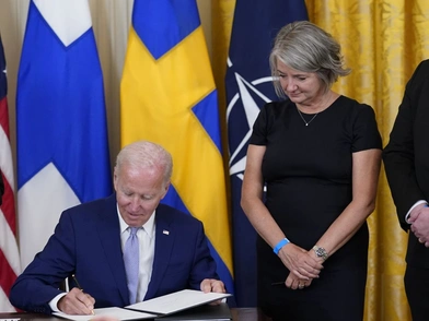 Την επικύρωση από τις ΗΠΑ της εισδοχής της Σουηδίας και της Φινλανδίας στο NATO, τη διεύρυνση της συμμαχίας που αποφασίστηκε μετά την εισβολή της Ρωσίας στην Ουκρανία, υπέγραψε χθες Τρίτη ο αμερικανός πρόεδρος Τζο Μπάιντεν. Οι δύο σκανδιναβικές χώρες θα είναι «ισχυροί, αξιόπιστοι σύμμαχοι με μεγάλες δυνατότητες» στη στρατιωτική συμμαχία υπό την ηγεσία των ΗΠΑ, διαβεβαίωσε ο κ. Μπάιντεν κατά τη διάρκεια της τελετής υπογραφής στον Λευκό Οίκο.