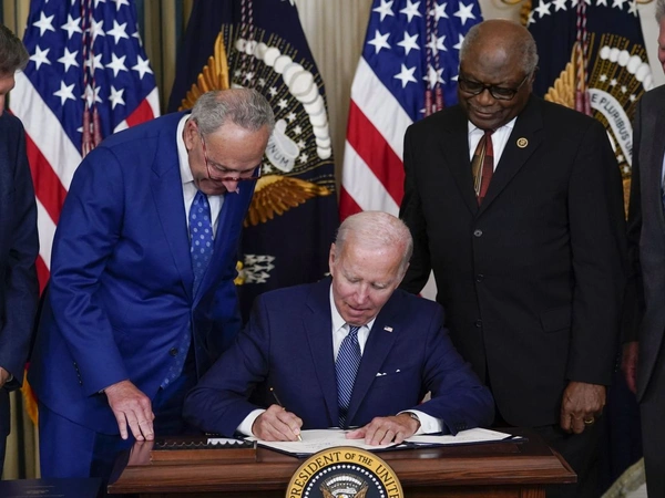 «Σε αυτήν την ιστορική στιγμή, οι Δημοκρατικοί τάχθηκαν στο πλευρό του αμερικανικού λαού και κάθε Ρεπουμπλικάνος τάχθηκε στο πλευρό ειδικών συμφερόντων», υποστήριξε ο Μπάιντεν θυμίζοντας ότι «κάθε Ρεπουμπλικάνος στο Κογκρέσο καταψήφισε αυτό το νομοσχέδιο».