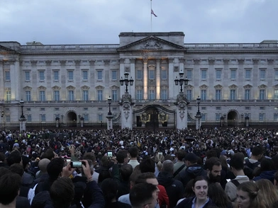 Το κλίμα στην πλατεία μπροστά από το Μπάκιγχαμ ήταν πολύ διαφορετικό πριν από τρεις μήνες, όταν η βασίλισσα εμφανίστηκε στο μπαλκόνι για να χαιρετίσει το τεράστιο πλήθος που απολάμβανε τις εορταστικές εκδηλώσεις του Πλατινένιου Ιωβηλαίου. Σήμερα, η αγωνία μετατράπηκε σε σοκ όταν ανακοινώθηκε ο θάνατός της. Λονδρέζοι και τουρίστες στριμώχνονταν στην πύλη για να διαβάσουν την επίσημη ανακοίνωση. Σταδιακά, άρχισαν να καταφθάνουν χιλιάδες άνθρωποι, πολλοί κρατώντας λουλούδια.