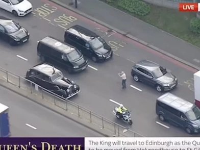 Ο Βασιλιάς Κάρολος πήγαινε από την Αίθουσα του Γουέστμινστερ για τη νεκρική πομπή της βασίλισσας Ελισάβετ προς τη RAF Northholt όταν η συνοδεία του έπεσε σε «ενέδρα» από έναν άνδρα, οπλισμένο με... μια κάμερα. Ο άνδρας, φορώντας ένα λευκό μπλουζάκι και ένα μπλε παντελόνι, κυνηγούσε το αυτοκίνητο του μονάρχη για περίπου 100 μέτρα όταν βγήκε τρέχοντας στον δρόμο, διασχίζοντας δύο λωρίδες κυκλοφορίας, για να τραβήξει μια φωτογραφία του Βασιλιά.