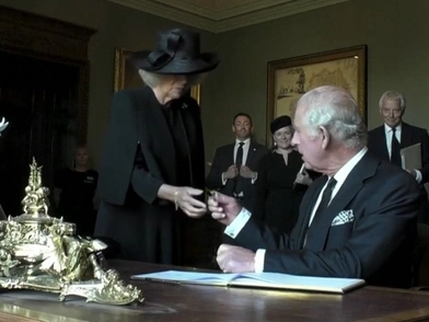 Ο βασιλιάς Κάρολος παραπονέθηκε για την πένα που χρησιμοποιούσε για να υπογράψει το όνομά του, ανακοινώνοντας ότι δεν αντέχει αυτό το «καταραμένο» πράγμα καθώς φαινόταν να προσπαθεί να βγάλει το μελάνι από τα δάχτυλά του τρίβοντάς το. Η βασιλική σύζυγος, Καμίλα Πάρκερ Μπόουλς αργότερα ανέφερε ότι έτρεχε το μελάνι και ζήτησε αντικατάσταση ενώ ο Βασιλιάς έφυγε βιαστικά από το δωμάτιο πλαισιωμένος από βοηθούς.