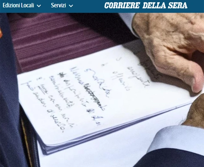 Η φωτογραφία δημοσιεύτηκε στην Corriere della Sera, ενώ η εφημερίδα La Repubblica, ανέφερε πως αυτό το χαρτί τοποθετήθηκε πάνω στο έδρανο μετά την άρνηση της Μελόνι να δεχθεί το αίτημα του πρώην πρωθυπουργού για υπουργοποίηση της στενής του συνεργάτιδας, της Λίτσια Ροντζούλι. Στο ίδιο σημείωμα, αναφέρεται: «Η Τζόρτζια δεν είναι πρόθυμη να δεχθεί αλλαγές, δεν γίνεται να συμφωνήσεις μαζί της».