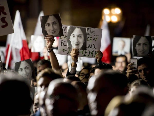 Στη δίκη είναι παρόντες πολλοί εκπρόσωποι ενώσεων για την προάσπιση της ελευθεροτυπίας, όπως των Δημοσιογράφων Χωρίς Σύνορα (RSF) και του Ευρωπαϊκού Κέντρου για την Ελευθερία του Τύπου και των Μέσων Ενημέρωσης. Η δημοσιογράφος δολοφονήθηκε μέσα στο αυτοκίνητό της, κοντά στο σπίτι της, λίγες ώρες αφότου είχε αναρτήσει το ακόλουθο μήνυμα: «Υπάρχουν διεφθαρμένοι παντού. Η κατάσταση είναι απελπιστική».