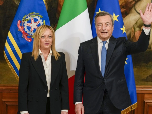Μόλις ανέβηκε τις σκάλες του κυβερνητικού μεγάρου και συνάντησε τον Ντράγκι, η Ιταλίδα πολιτικός του έσφιξε το χέρι και τού είπε «είναι, οπωσδήποτε, μια στιγμή συγκινησιακά φορτισμένη». Ο απερχόμενος επικεφαλής της κυβέρνησης και η νέα πρωθυπουργός, είχαν αναλυτική συνομιλία διάρκειας μιας ώρας και είκοσι πέντε λεπτών. «Αυτή η κυβερνητική ομάδα θα υπηρετήσει τη χώρα με αίσθημα ευθύνης και περηφάνεια. Τώρα αφιερωνόμαστε όλοι στην δουλειά», ανέφερε σε ανάρτησή της στο twitter η κυρία Μελόνι.