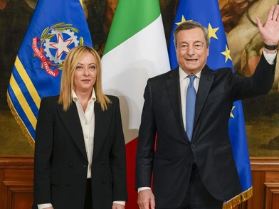 Στο κυβερνητικό μέγαρο Παλάτσο Κίτζι πραγματοποιήθηκε σήμερα η προγραμματισμένη τελετή παράδοσης- παραλαβής. Όπως συμβαίνει με κάθε αλλαγή κυβέρνησης -και αυτή την φορά- ο απερχόμενος πρωθυπουργός Μάριο Ντράγκι έδωσε το παραδοσιακό «χρυσό καμπανάκι» στη νέα Ιταλίδα πρωθυπουργό, Τζόρτζια Μελόνι.