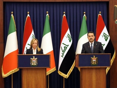 Έπειτα έδωσε συνέντευξη με τον Μοχάμεντ Σία Αλ Σουντανί στο κυβερνητικό μέγαρο με τη σημαία που βρίσκεται πίσω από την Ιταλίδα Πρωθυπουργό να μην παραπέμπει στην Ιταλία. Πίσω από τους ηγέτες, όπως απαιτεί το πρωτόκολλο, είχαν υψωθεί οι σημαίες των αντίστοιχων χωρών, αλλά η ιταλική σημαία δεν φαίνεται να βρίσκεται πίσω από την Τζόρτζια Μελόνι καθώς υπήρχε πορτοκαλί αντί για κόκκινο, κάτι που παρέπεμπε στην ιρλανδική σημαία. Γεγονός που έγινε ακόμη πιο εμφανές από τη διαφορετική απόχρωση σε σχέση με το κόκκινο που υπάρχει στη σημαία του Ιράκ.