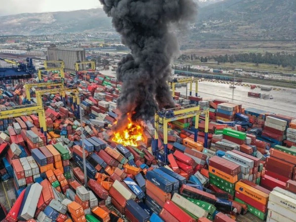 Συγκεκριμένα, σε βίντεο που αναρτήθηκαν στο Twitter φαίνεται πυκνός καπνός να υψώνεται στον αέρα, με τη φωτιά να προέρχεται από τον χώρο που είναι στοιβαγμένα εκατοντάδες κοντέινερ.