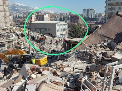Viral έχει γίνει τις τελευταίες ώρες δύο φωτογραφίες που ανάρτησε στο Twitter ο πρόεδρος του τουρκικού επιμελητηρίου ηλεκτρολόγων μηχανικών. Τι δείχνουν αυτές οι φωτογραφίες; Το μοναδικό κτήριο που έμεινε όρθιο σε μία γειτονιά του Καχραμανμαράς και στέκει αλώβητο ενώ δίπλα του όλα τα υπόλοιπα κτίσματα έχουν γίνει βουνά από μπάζα. Το συγκεκριμένο δυόροφο ανήκει στο επιμελητήριο των Πολιτικών Μηχανικών της Τουρκίας, είναι το παράστημά τους στην περιοχή!