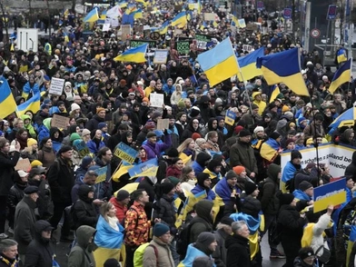 Περίπου 10.000 άνθρωποι, σύμφωνα με την Αστυνομία, συγκεντρώθηκαν σήμερα στο κέντρο του Βερολίνου διαδηλώνοντας υπέρ των διαπραγματεύσεων με την Μόσχα και ενάντια στην παράδοση όπλων στην Ουκρανία, ένα χρόνο και μία ημέρα μετά την έναρξη της ρωσικής εισβολής.