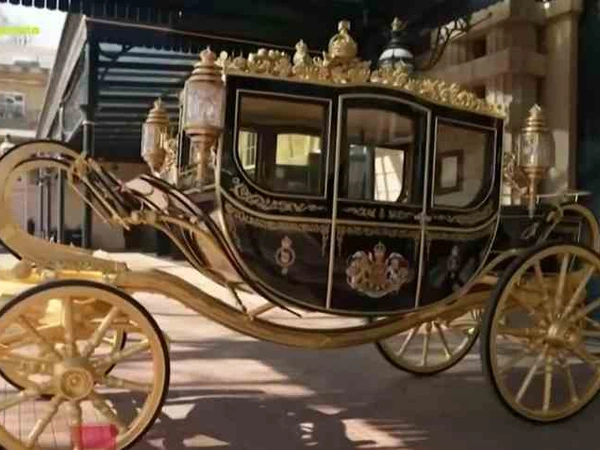 Στο σκαρί της βασιλικής άμαξας υπάρχουν κομματάκια ξύλου από τη μηλιά του Ισαάκ Νεύτωνα κάτω από την οποία εμπνεύστηκε τη θεωρία της βαρύτητας.Το μήκος της καρότσας ξεπερνά τα πεντέμισι μέτρα, έχει ύψος περίπου τρία μέτρα, ζυγίζει πάνω από τρεις τόνους και την σέρνουν έξι άλογα. Μετά την στέψη θα βασιλικό ζευγάρι θα επιβιβαστεί στην χρυσή άμαξα Γκολντ Στέιτ που κατασκευάστηκε το 1762. Έχει μήκος 7 μέτρα, ύψος 3,6 μέτρα, βάρος τέσσερις τόνους και την τραβούν οκτώ άλογα.