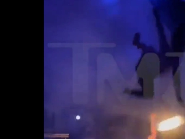 Η ακροβάτισσα φαίνεται να στριφογυρίζει γύρω από μια κρεμαστή κουρτίνα και καθώς ξετύλιγε το σεντόνι φαίνεται να χάνει τη λαβή της, πέφτοντας ανάμεσα σε δύο ηχεία. Η γυναίκα έμεινε ακίνητη στο έδαφος, καθώς ο κόσμος έσπευσε να τη βοηθήσει, και οι τραυματιοφορείς έφτασαν γρήγορα για να την απομακρύνουν.