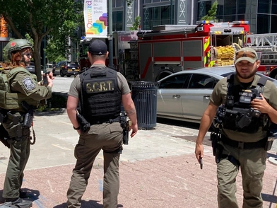 Ισχυρές αστυνομικές δυνάμεις έχουν αναπτυχθεί στην περιοχή, σύμφωνα με τα πλάνα που μεταδόθηκαν από τα αμερικανικά τηλεοπτικά δίκτυα. Πολλά ασθενοφόρα έχουν επίσης σπεύσει στο σημείο.