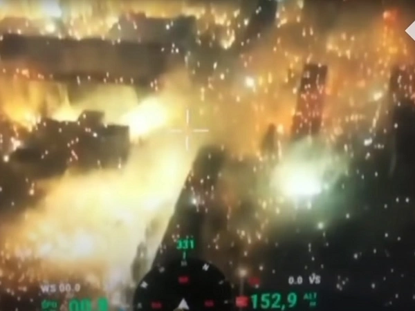 Άλλα βίντεο που κυκλοφορούν στο Διαδίκτυο δείχνουν «σταγόνες» λάμψης φωτός να πέφτουν σαν βροχή στην πόλη της ανατολικής Ουκρανίας και να εκδηλώνονται διάσπαρτες εστίες φωτιάς στους δρόμους.