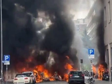Η εφημερίδα Corriere della Sera αναφέρει ότι ο οδηγός του φορτηγού φέρει έγκαυμα στο χέρι, ενώ καταστράφηκαν συνολικά πέντε σταθμευμένα οχήματα.