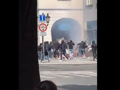 Τα βίντεο που κυκλοφορούν στα social media δείχνουν δεκάδες μαυροφορεμένους οπαδούς των δύο ομάδων να πετούν φωτοβολίδες, καρέκλες, ξύλα και πέτρες, προκαλώντας υλικές ζημιές στα παρακείμενα καταστήματα και κτίρια.
