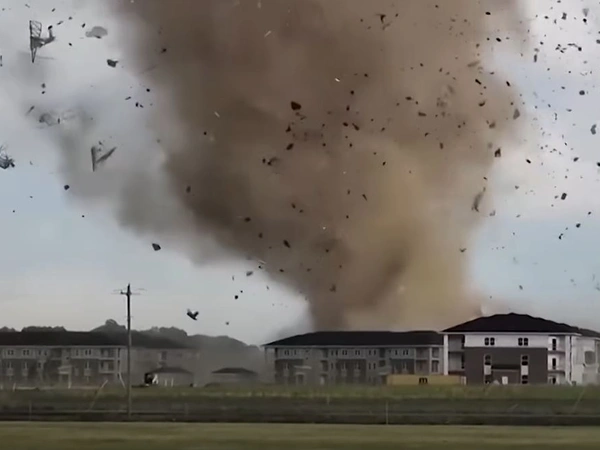 Σοκάρει βίντεο που τράβηξαν κάτοικοι των περιοχών με τους ανεμοστρόβιλους να διαπερνούν τα σπίτια.
