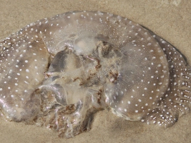 Σε παραλία του Τέξας ξεβράστηκε η Αυστραλιανή μέδουσα με στίγματα, η οποία είναι γνωστή και ως η καφέ μέδουσα ή η μέδουσα με λευκές κηλίδες.