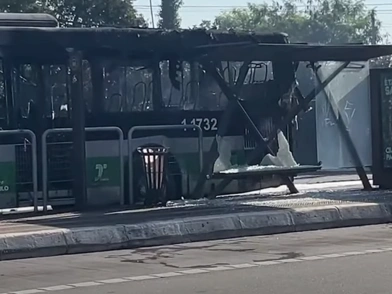 Πλάνα από το σημείο της συντριβής δείχνουν τα συντρίμμια και το λεωφορείο να έχουν τυλιχθεί στις φλόγες, με τους πυροσβέστες να προσπαθούν να σβήσουν τη φωτιά.