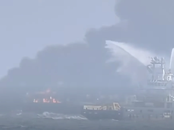 Εικόνες από τα βρετανικά τηλεοπτικά δίκτυα εμφανίζουν τεράστια σύννεφα καπνού και φλόγες να υψώνονται από το σημείο της σύγκρουσης. Τα δύο πλοία μόλις που διακρίνονται μέσα στο τοπίο. Σύμφωνα με το Bloomberg, το τάνκερ είχε αναχωρήσει από την Ελλάδα φορτωμένο με πετρελαιοειδή.