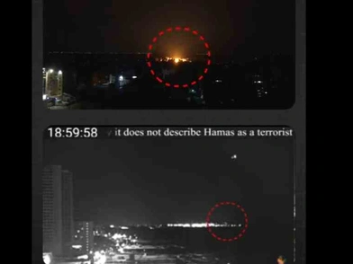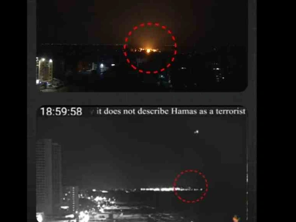 Συγκρίνοντας αυτές τις επιθέσεις του ισραηλινού στρατού με ένα βίντεο το οποίο έχει στη διάθεσή του το Al Jazeera (το οποίο προέρχεται από κάμερα ασφαλείας στο νότιο Τελ Αβίβ και καταγράφει εικόνα από τη Γάζα), προκύπτει πως το «Iron Dome», ταυτόχρονα με τις επιθέσεις του ισραηλινού στρατού, έχει αναχαιτίσει μια σειρά από πυραύλους προερχόμενους από τη Γάζα και στις 18:59 και 50 δευτερόλεπτα αναχαιτίζει έναν τελευταίο πύραυλο (τον επίμαχο πύραυλο) ο οποίος φαίνεται ξεκάθαρα πως εκρήγνυται και διαλύεται στον αέρα. Πέντε δευτερόλεπτα μετά την αναχαίτιση του τελευταίου πυραύλου που εκτοξεύτηκε από τη Γάζα, φαίνεται σε όλα τα βίντεο μια μεγάλη λάμψη η οποία δυο δευτερόλεπτα αργότερα συνοδεύεται από μια ισχυρή έκρηξη. Αυτό είναι το φονικό πλήγμα που δέχθηκε το νοσοκομείο al-Ahli.