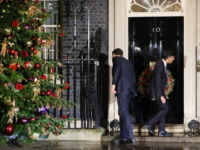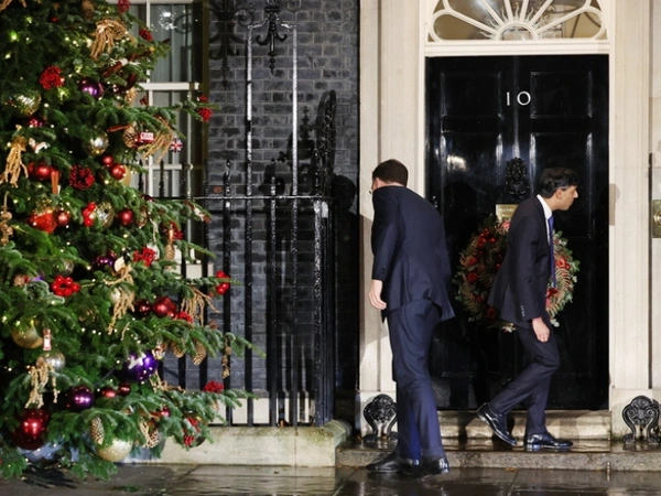 Ο Σούνακ υποδέχθηκε τον καλεσμένο του έξω από την πόρτα της στολισμένης πρωθυπουργικής κατοικίας.