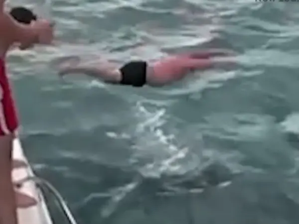 Στα σχετικά βίντεο που ήρθαν στη δημοσιότητα και έγιναν viral, ακούγεται κόσμος να επευφημεί τον άνδρα πριν αρχίσει να κολυμπάει προς τις φάλαινες, σε μια δεύτερη προσπάθεια να τις φτάσει.