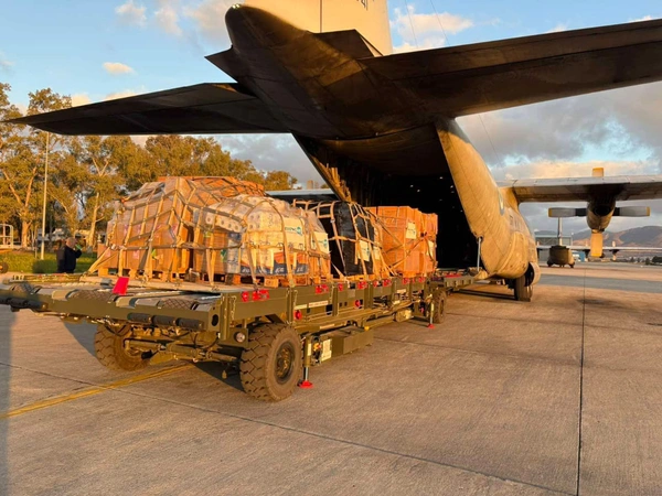 Αεροσκάφος C-130 της Πολεμικής Αεροπορίας μετέφερε φορτίο συνολικού βάρους 6 τόνων που περιλάμβανε ιατροφαρμακευτικό υλικό καθώς επίσης και είδη ένδυσης, καθαριότητας και ατομικής υγιεινής.